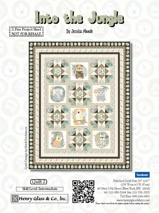 Into the Jungle by Jessica Mundo is a 12-piece collection that features a 24” panel of jungle animal vignettes. Accompanying the panel are designs of tossed tigers, leopards, elephants, hippos and animal faces. There is also plaid, leopard skin, tiger skin patterns and a stripe. This collection is perfect for your next wild quilt!