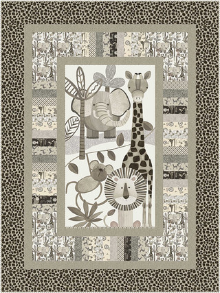 Little ones roar like lions and play like monkeys on the playground. Create a blanket perfect for their wild side with Jungle Romp by Betsy Cavallo. The neutral color palette will tie in perfectly with any décor you already own. The stripe is perfect for the edge of a duvet or curtain. Make them a quilted playmat using their favorite wild animals. Help your little ones stand tall like a giraffe and run like a zebra as you get busy in the sewing jungle.