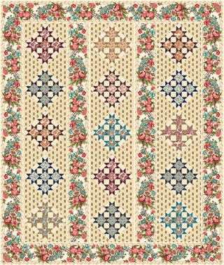 Mariakerke by Michelle Yeo was inspired by fabrics from 2 antique quilts from the 1830s and 1840s. Michelle purchased the quilts at the European patchwork meeting held in St. Marie aux Mines. Michelle attended the show with her friend, Françoise, who lives in Mariakerke in the city of Ghent. While at the show, Françoise and Michelle stayed in a family-owned hotel run by Marie-Rose. The name ‘Mariakerke’ was selected because of the ‘Marie’ theme throughout her trip that inspired this group. Mariakerke includes a stunning floral print inspired by chintz fabrics of the 1800s in three colorways with pink and teal flowers. The collection includes two of Michelle’s trademark serpentine prints, one that runs vertically and the other a diagonal serpentine floral.